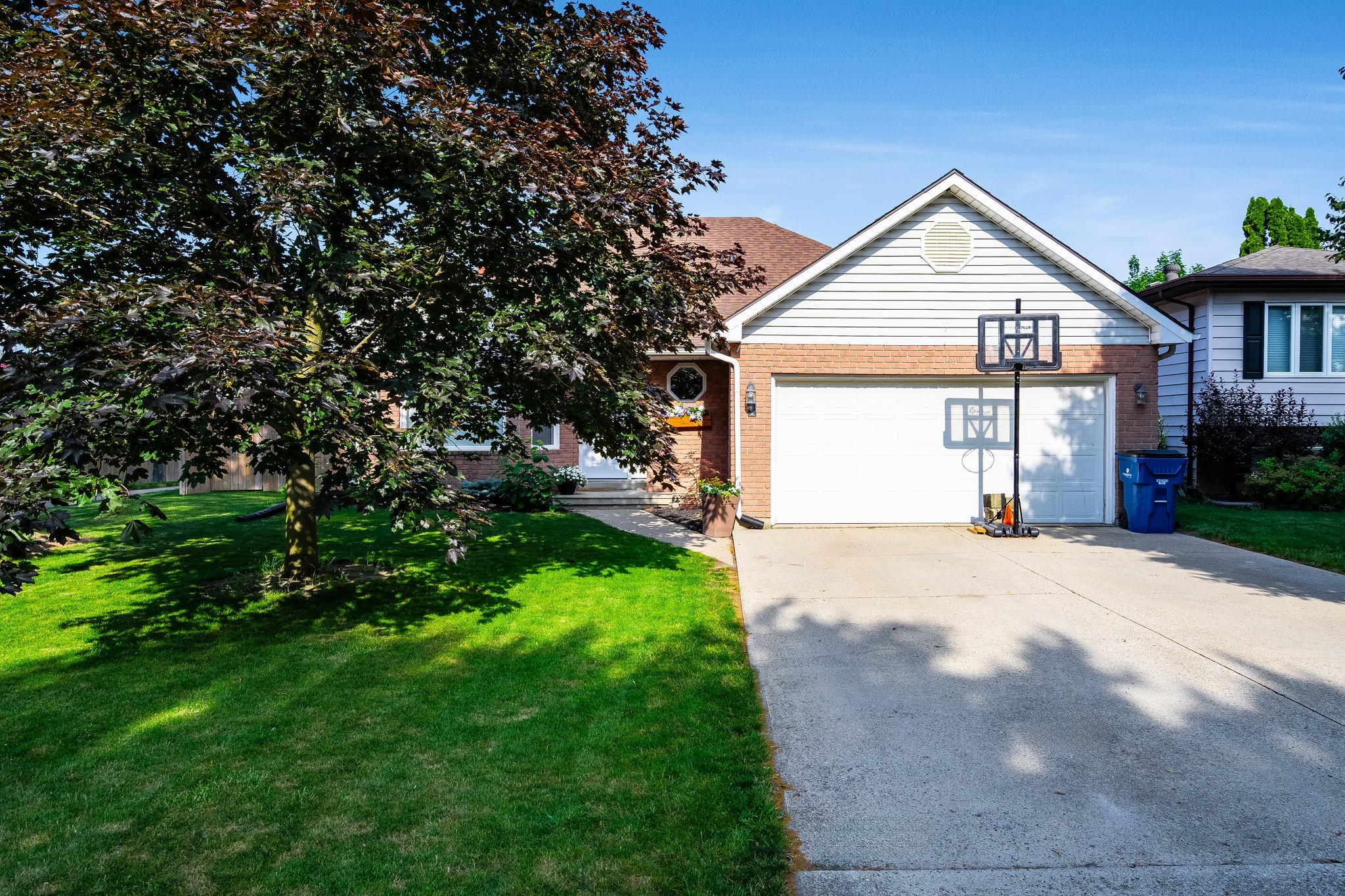 Welcome to this beautifully maintained 4-level brick back-split - thoughtfully designed for everyday living & family comfort. A convenient 2-piece bath is located off the front foyer and near the 1.5 car attached garage. The open-concept kitchen & dining area features a patio door leading to a concrete patio & fully fenced, landscaped backyard - perfect for kids and pets to enjoy! The second level boasts a bright living room overlooking the main space. Upstairs offers 3 bedrooms, including a spacious primary with two large closets and a shared Jack-and-Jill 4-piece bath. The lower level includes a cozy family room with a wood-burning fireplace, office space, 4th bedroom, a 3-piece bath/laundry combo, and access to the basement with utility room & ample storage. Major updates in the past 5-6 years include furnace, A/C, roof, windows, doors, flooring & waterproof basement by Spraytec. A truly versatile and inviting home for families of all sizes.