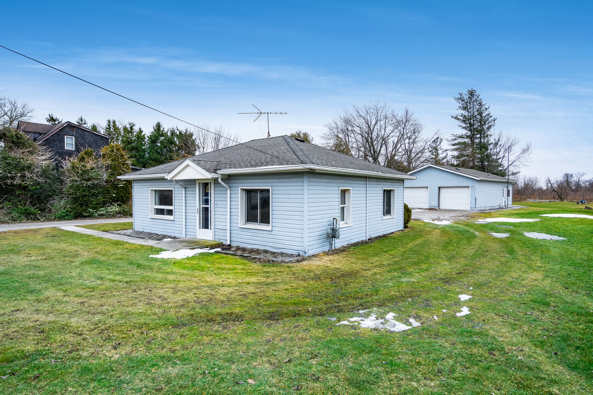 Centrally located just minutes from the Town of Essex and only 15 minutes to Windsor, this impressive 90' x 307' county property offers space, potential, and incredible value. Perfect for the handyman, hobbyist, or savvy investor, this property features a massive 26' x 36' four-car garage - ideal as a workshop, storage space, or ultimate tinkering haven. Whether you're restoring vehicles, running a home-business, or simply need room to create, this garage is a rare find. This cozy 2-bedroom bungalow offers great bones and plenty of opportunity to make it your own. Inside, you'll find a spacious living room filled with natural light, an eat-in kitchen with plenty of room for family gatherings, a dedicated office space - perfect for working from home or converting to suit your needs. The expansive county lot provides endless possibilities.